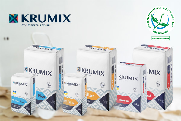 Суміші будівельні сухі ТМ «КРУМІКС» («KRUMIX») успішно пройшли повторну екологічну сертифікацію