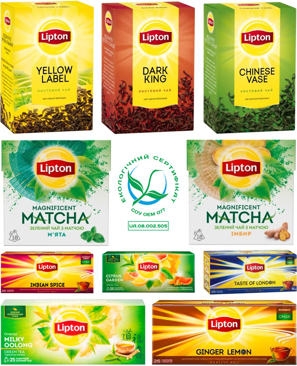 31 найменування чаїв ТМ Lipton виробництва ТОВ «Юнілівер Україна» успішно пройшли екологічну сертифікацію за схемою згідно з ISO 14024, що підтверджено екологічним сертифікатом №UA.08.002.505.