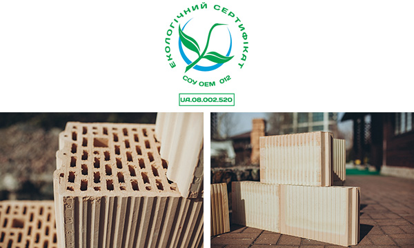 ТОВ «Кузьминецька будівельна кераміка» отримано екологічний сертифікат №UA.08.002.520 та право застосування екологічного маркування відносно каменів керамічних крупноформатних рядових порожнистих високої ефективності ТМ «КЕРАТЕРМ».