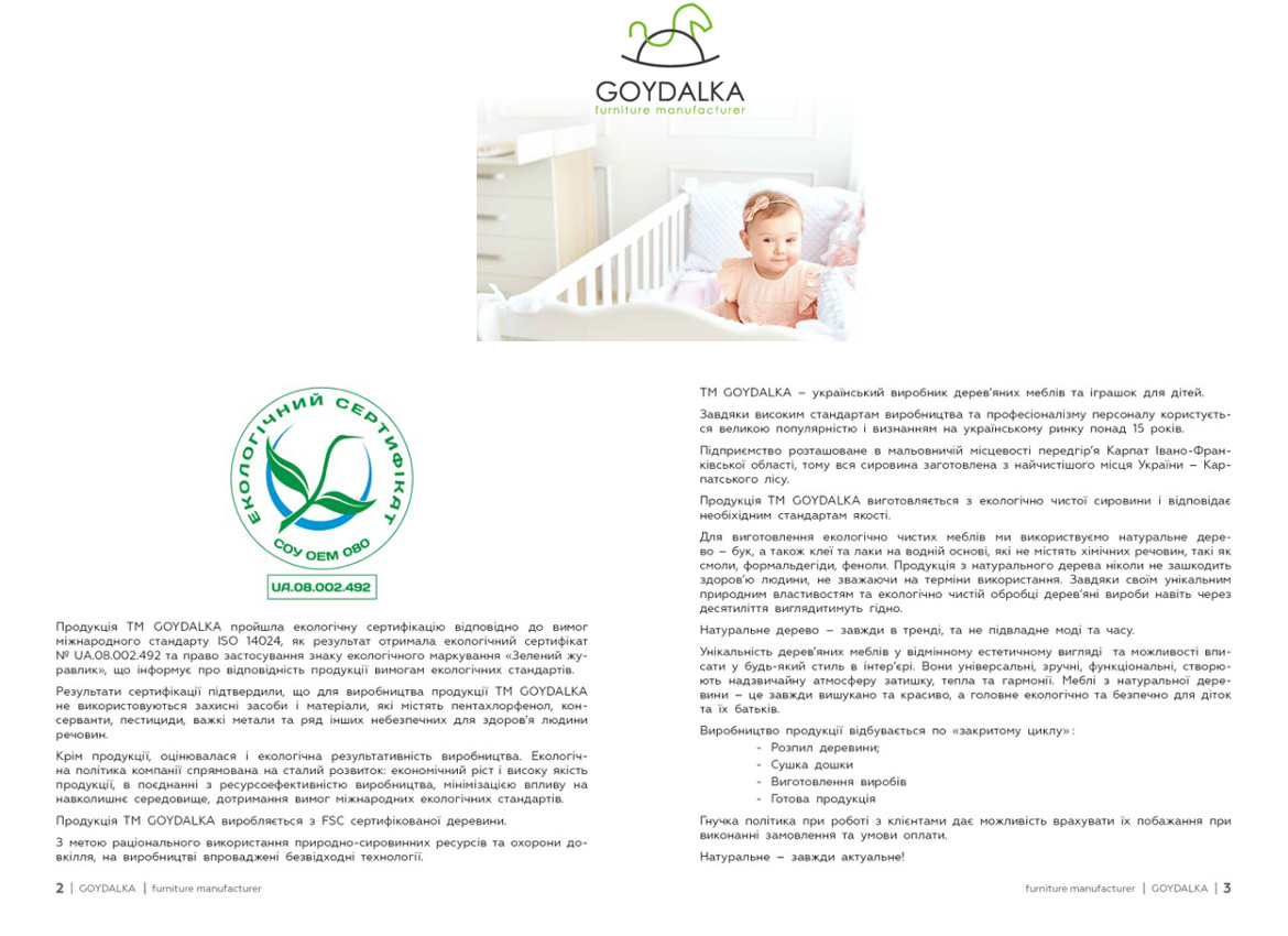 В залежності від того для кого призначено видання, інформація про маркування та переваги продукції, що підтверджені екологічною сертифікацією, може бути надана декількома фразами або детальним описом.