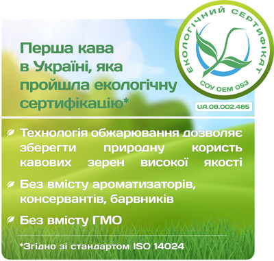 Інформаційний постер про сертифікацію і підтверджені переваги екологічно сертифікованої кави