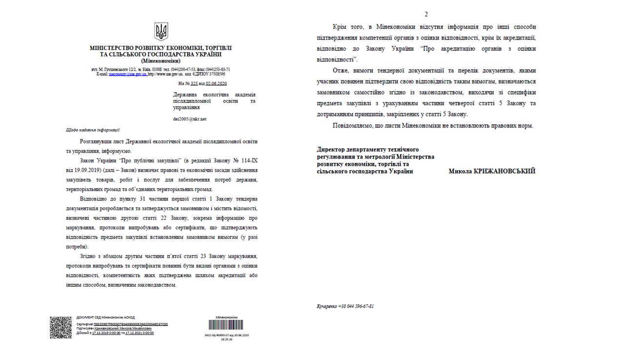 Лист-роз'яснення Мінекономрозвитку України