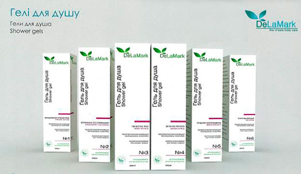 - Гелі для душу: «Французька подорож», «Полуниця з вершками», «Пелюстки троянд», «Зелене яблуко», «Ягідна насолода», «Розслаблюючий»;