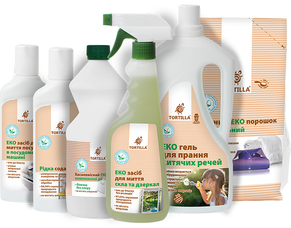 Мийні засоби ТМ TORTILLA не містять фосфати, фосфонати, хлор та інші речовини небезпечні для довкілля та здоров’я людини згідно вимог критеріїв екологічного стандарту. Мають високий показник біологічного розкладу – більш ніж 90 %.