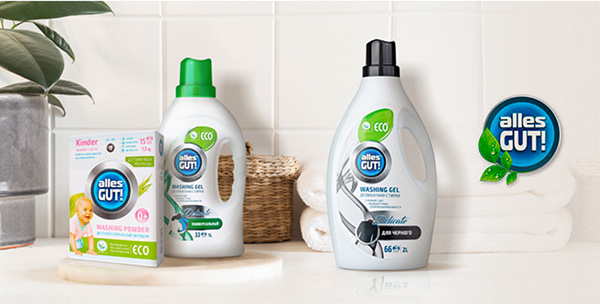 Мийні засоби ТМ ALLES GUT! не містять фосфати, фосфонати, хлор та інші речовини небезпечні для довкілля та здоров’я людини згідно вимог екологічних критеріїв.