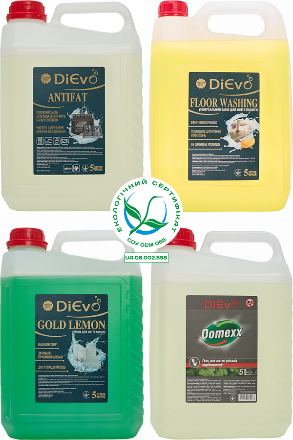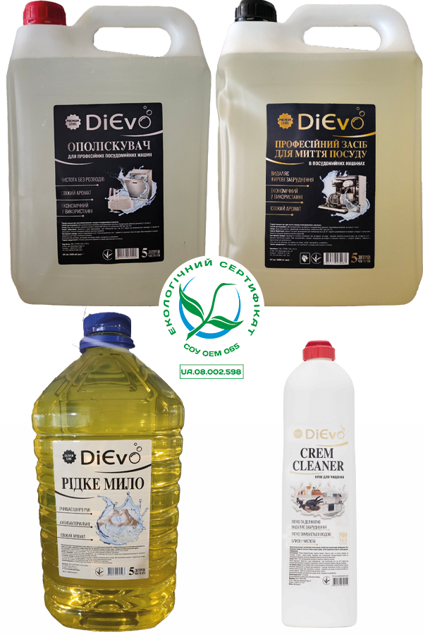 11 найменувань мийних засобів ТМ DiЄvo компанії ТОВ «СТРЕЙЧ-ПАК» підтвердили свою відповідність вимогам СОУ ОЕМ 08.002.12.065:2020 Засоби мийні та засоби для чищення. Екологічні критерії оцінювання життєвого циклу. Оцінювання здійснювалось за схемою згідно ISO 14024.