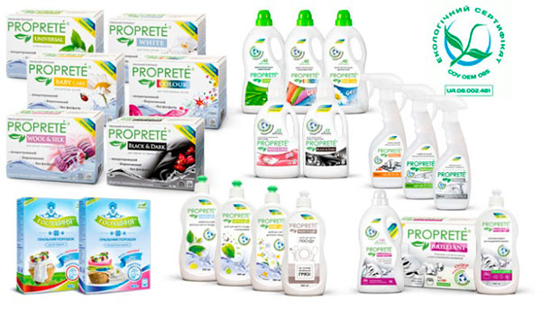 Мийні засоби ТМ Proprete та ТМ Господиня не містять фосфати, фосфонати, хлор та інші речовини небезпечні для довкілля та здоров’я людини згідно вимог екологічних критеріїв.