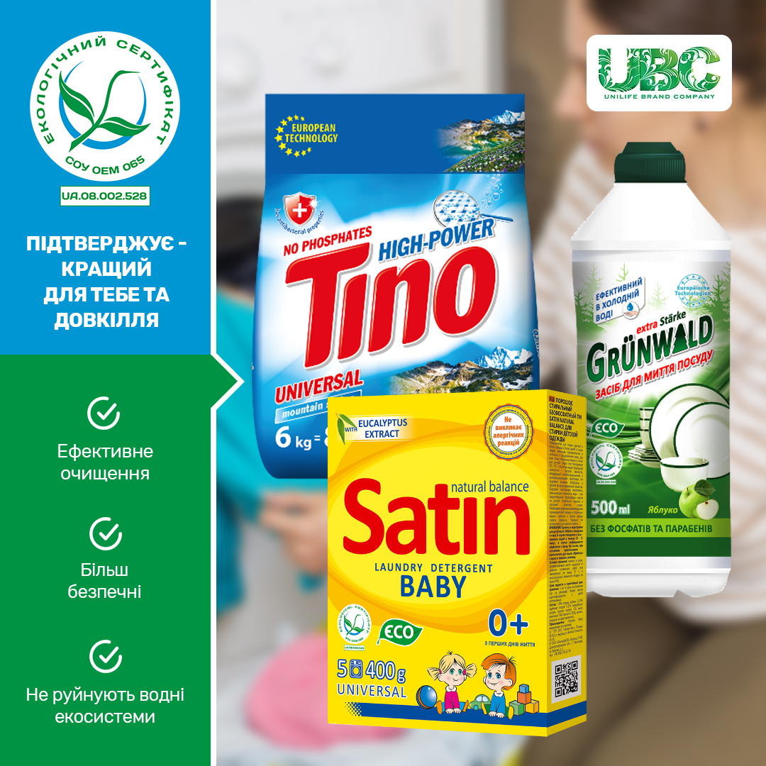 Детальніше про екологічно сертифіковані мийні засоби виробництва ТОВ «Юнілайф.ПВ» на www.unilife-pv.prom.ua