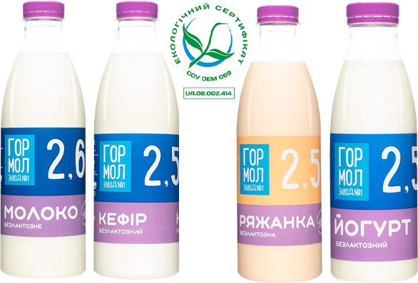 Екологічно сертифікована продукція виробництва ТОВ «Гормолзавод» виробляється з фермерського молока, не містить рослинних жирів, харчових добавок синтетичного походження, харчових добавок, які заборонені екологічними критеріями, консервантів, стабілізаторів, підсилювачів смаку та аромату, ГМО, антибіотиків, радіонуклідів, та не обробляється антибактеріальними препаратами.