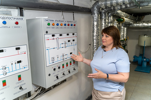 Будівля ліцею відрізняється енергоефективністю, незважаючи на великі і світлі приміщення з сучасним дизайном. Теплою водою забезпечується від відновлюваних джерел енергії – геліосистеми з 8 модулів що розташовані на даху будівлі.