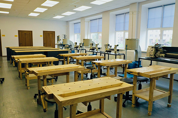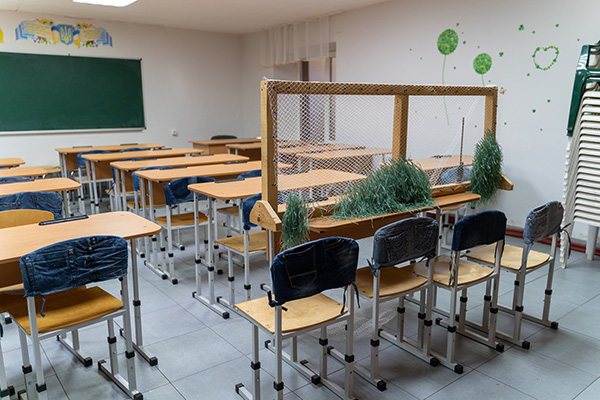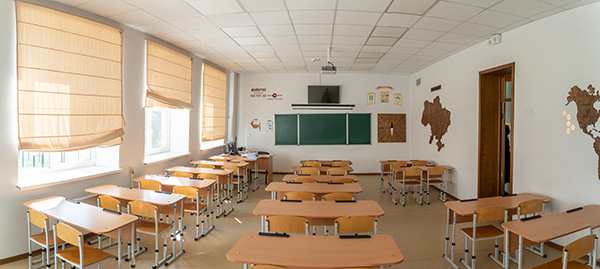 У класах встановлені ергономічні парти та стільці, що регулюються у відповідності зі зростом конкретного учня.