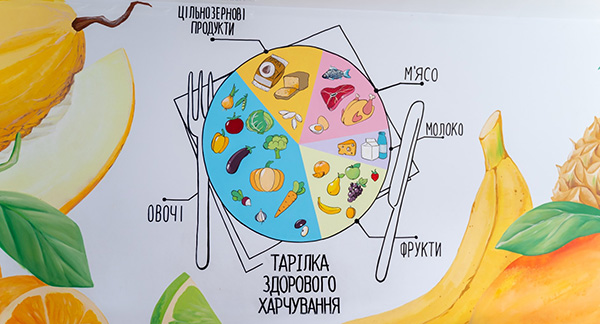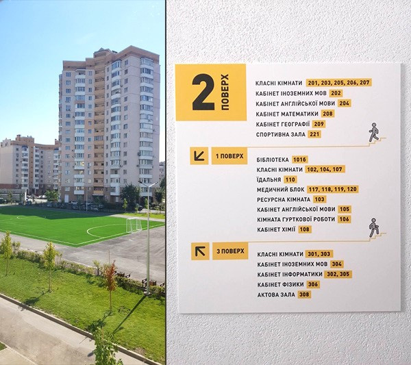 Зручні навігаційні таблички з переліком класів на кожному поверху, таблички – мотиватори і оформлення простору закладу спрямовані на формування екологічної культури та свідомого ставлення до ресурсів і споживання.