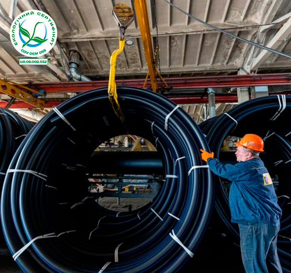 - обсяг викидів парникових газів на стадії виробництва в 7 разів менше в порівнянні з металевими трубами, аналогічними за призначенням;