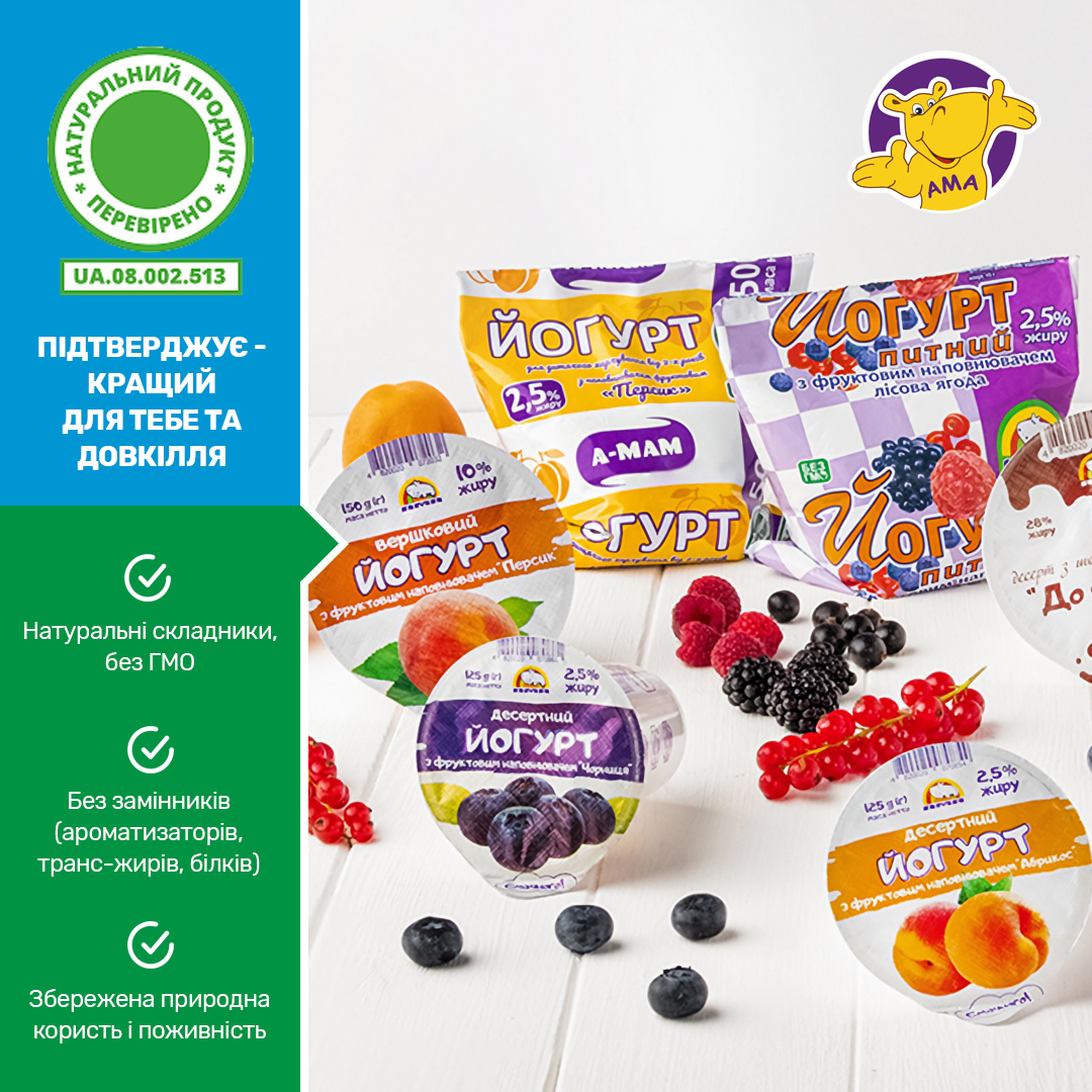 Молочна продукція торгових марок «АМА» та «А-МАМ», вироблена ТОВ «ФІРМА «ФАВОР», успішно пройшла процедуру щорічного нагляду та підтвердила право використовувати знак «Натуральний продукт».