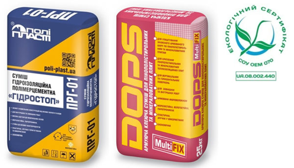 Суміш гідроізоляційна полімерцементна «Гідростоп» ПРГ-01 ТМ «ПОЛІПЛАСТ» та армуюча клейова суміш для пінополістирольних та мінераловатних плит «DOPS MULTIFIX» виробництва ТОВ «Виробнича компанія «Поліпласт» успішно пройшли повторну екологічну сертифікацію згідно з ISO 14024. Дію екологічного сертифікату UA.08.002.440 продовжено на наступні три роки.