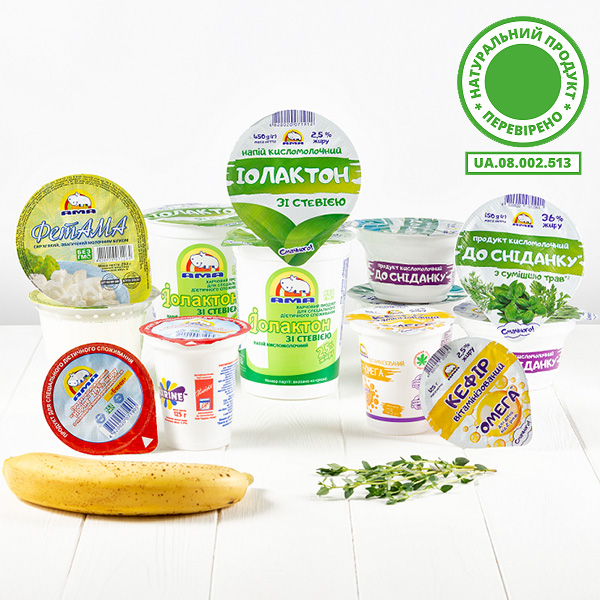 7 найменувань молочної та кисломолочні продукти для дитячого харчування ТМ «АМА», «А-МАМ» виробництва ТОВ «Фірма «Фавор» успішно підтвердили свою натуральність та отримали право на позначення словом «натуральний» та застосування знаку марковання «Натуральний продукт» (сертифікат № UA.08.002.513).