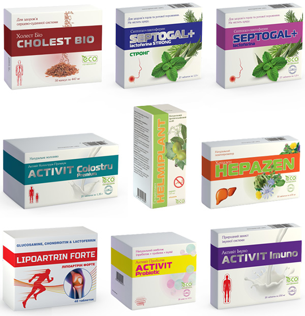 Екологічно сертифіковані добавки біологічно активні та дієтичні виробляються на виробничих потужностях AESCULAP PROD – виробника натуральних біологічно-активних добавок рослинного та тваринного походження на території Румунії, та SCS Eurofarmaco SA – виробника фармацевтичних препаратів та харчових добавок на території Молдови.