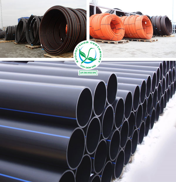 - Виробництво поліетиленових труб не спричиняє утворення відходів, а обсяг викидів CO2 пов’язаних з процесом виробництва в сім разів менше в порівнянні з виробництвом металевих труб аналогічного функціонального призначення.